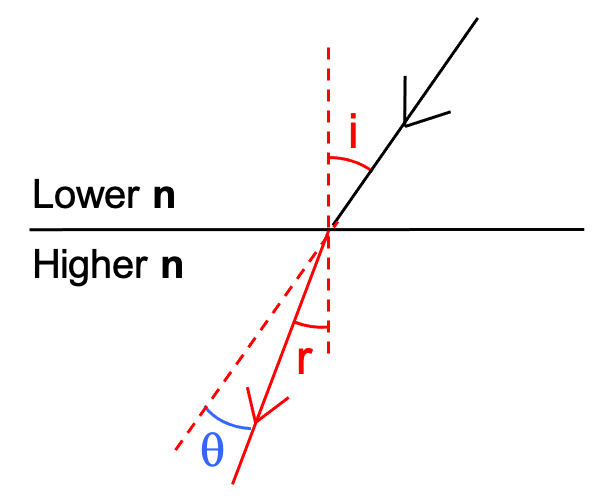 The exact amount of ‘bending’ depends on the refractive index of the medium.