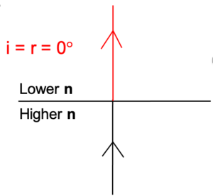 light travelling normally into a media of