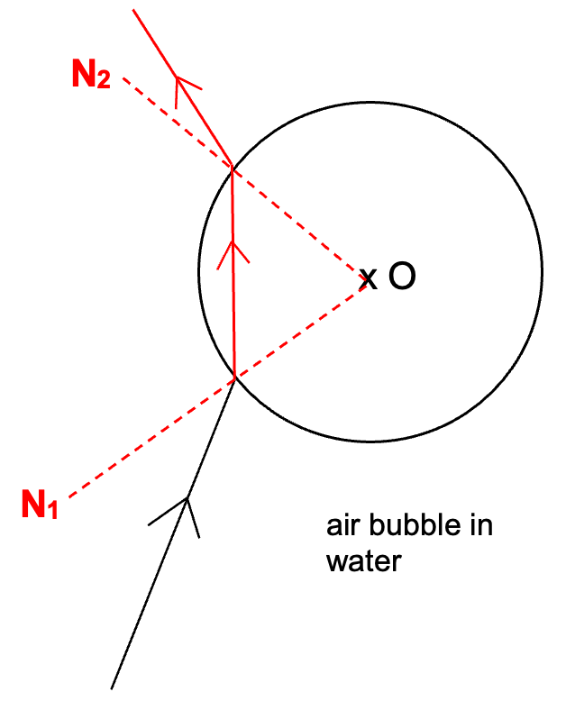 will bend away from the normal
