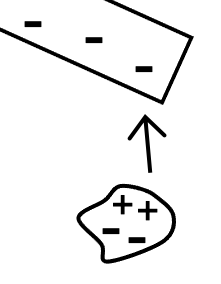 A negatively charged polythene rod is brought near to some aluminium shavings. Small aluminium shavings are attracts to the polythene rod.