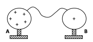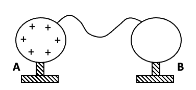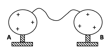 | It would be very tempting to say “positive charges flow from A to B“. But this would be wrong! Positive charges (ie the protons in the nucleus) do not move. B has become positive by losing electrons, whilst A has become less negative by gaining electrons. |