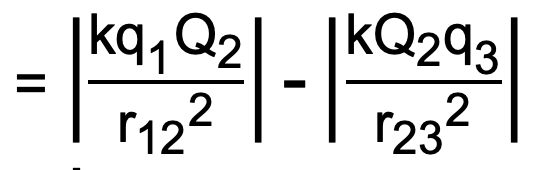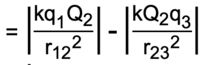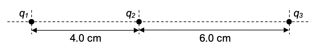 | The figure below shows three charges aligned along a straight line in vacuum.