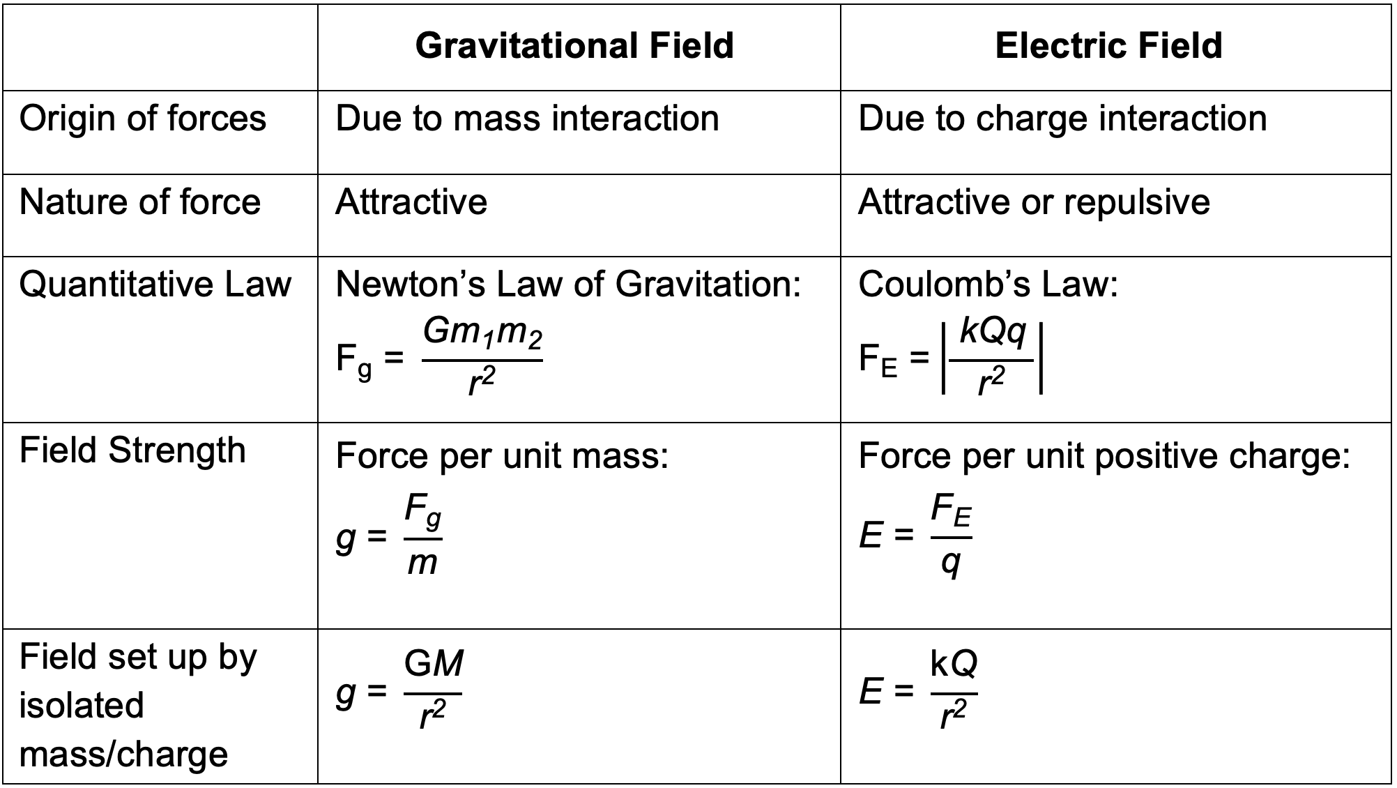 | The electric field strength, E, at a point in the field is the electric force F experienced per unit positive test charge, q, placed at that point.