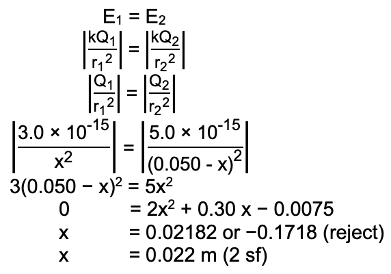 Determine the distance of a point N, measured from Q₁, where the resultant electric field strength due to both charges is zero. |