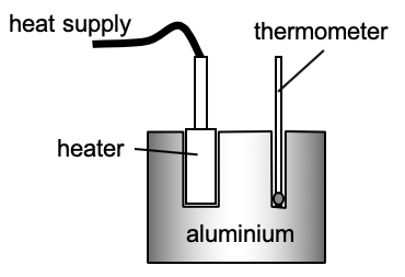 | 12 000 J of thermal energy was supplied to a 1.00 kg of aluminium block. The temperature of the block then rises from 31.0 °C to 45.0 °C.