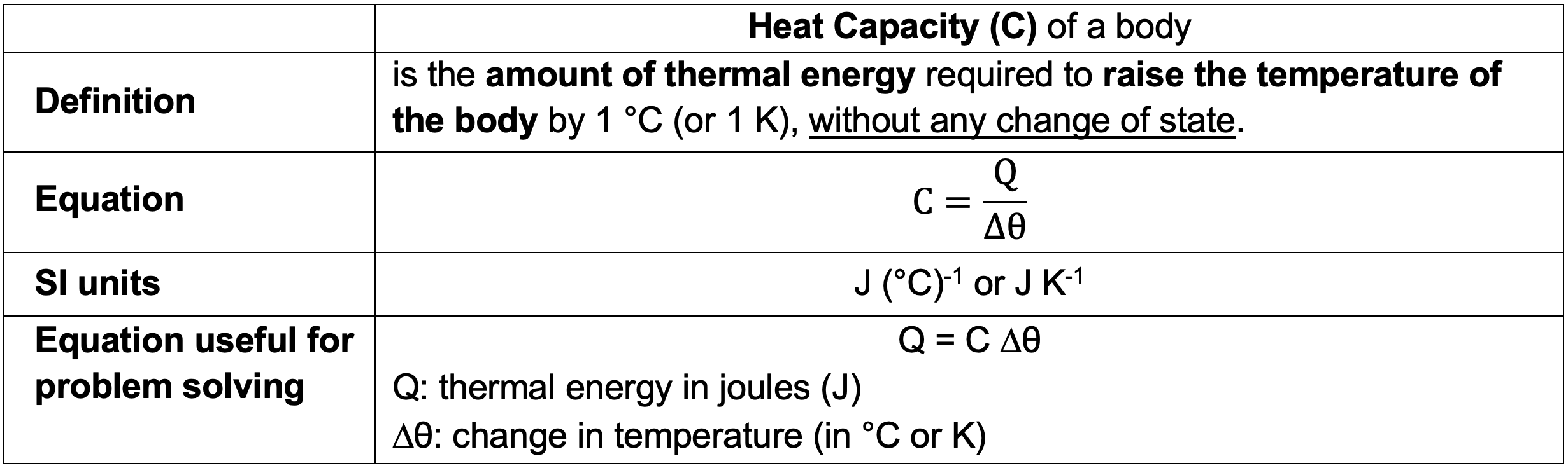 Specific Heat Capacity, c