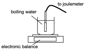 | Water is vaporised from a beaker using a heater attached to a joulemeter (a device to measure the energy used in joules (J) in an electrical circuit or appliance).