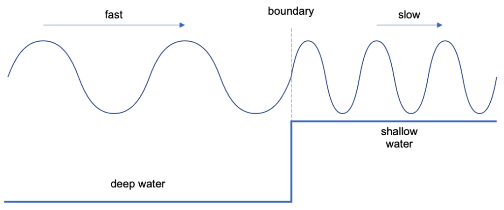 - Waver waves travelling from deep water into shallow water will slow down.