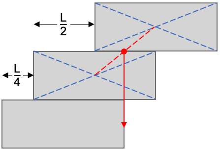 Thus the two top blocks can be slid L/4 along the bottom block/.