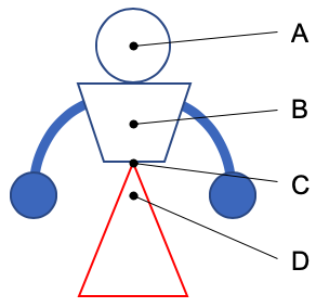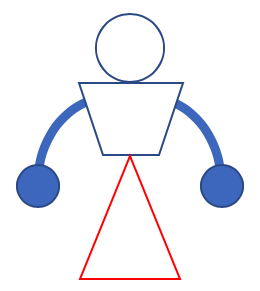 Consider the top two blocks as a single object. Their combined CoG will be at the red dot.