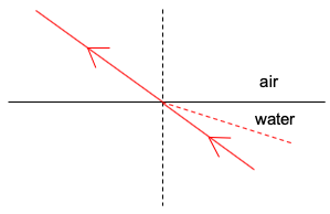 Revision: Refraction Report a question What's wrong with this question? You cannot submit an empty report. Please add some details. 03 Refraction - Revision Quiz Test your understanding of Refraction here: 1 / 5 1) The refractive index of a material is 2.0. What is the speed of light in this material? 4.0 × 108 m s-1 1.5 × 108 m s-1 2.0 × 108 m s-1 3.0 × 108 m s-1 2 / 5 2) A partial reflection is observed under which conditions? Only when light passes from an optical denser medium into an optically less dense medium. When light crosses a boundary between any two media of differing optical densities. Only when light passes from an optical less dense medium into an optically denser medium. From the surface of a plane mirror. 3 / 5 3) Which statement correctly describes the direction of the bending of light passing¬†into a material of higher optical density? Light travelling into a material of higher optical density will bend in a clockwise direction. Light travelling into a material of higher optical density will bend in an anticlockwise direction. Light travelling into a material of higher optical density will bend away from the normal. Light travelling into a material of higher optical density will bend towards the normal. 4 / 5 4) In which digram is the path of light not correct? 5 / 5 5) A ray of light travels into a triangular prism and refracts into many colours. The colours at the two ends of the spectrum are red and violet. Which colour of light has the higher refractive index in glass, and why? Violet as violet light has a higher refractive index in glass, and thus bends more. Red as red light has a higher refractive index in glass, and thus bends more. Violet as violet light has a higher refractive index in glass, and thus bends less. Red as red light has a higher refractive index in glass, and thus bends less. Your score is Restart quiz