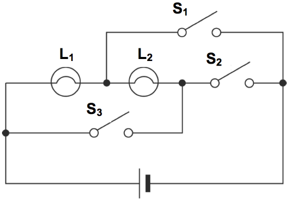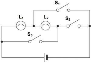 Revision: DC Circuits 16 DC Circuits - Revision Quiz Test your understanding of DC Circuits here: 1 / 5 1) The three graphs X, Y and Z show the I-V characteristics for three different circuit components. Which of the following shows the possible circuit components displaying the I-V characteristics of the graphs? D A B C 2 / 5 2) What is the current flowing through the resistor R? 3 A 9 A 4 A 6 A 3 / 5 3) Which of the following is not a type of resistor? 4 / 5 4) All resistors in the following circuit are identical. When the switch S of the circuit is closed, how do the readings of ammeters A1 and A2 change? A1: decreases, A2: increases A1: decreases, A2: decreases A1: increases, A2: decreases A1: increases, A2: increases 5 / 5 5) The diagram below shows a circuit including two light bulbs, L1 and L2, and three switches, S1, S2 and S3. In order to make the two light bulbs parallel, which switch(es) should be closed? S3 S1 S1 and S2 S1 and S3 Your score is Restart quiz